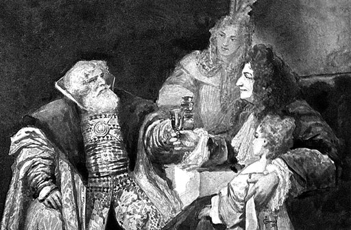Наконец стольники вышли за кушаньем и принесли водку, которую они всегда пьют в начале обеда, а затем жареных лебедей, которых в мясные дни они почти всегда подают гостям в качестве первого блюда. Трех из них поставили перед государем; он проколол их ножом, чтобы узнать, который лучше и предпочтительнее перед остальными, после чего тут же велел их унести. Все вместе сейчас же вышли за дверь. Возле двери в столовую стоял стол для разделки еды; там лебедя разрезали, положив на каждое блюдо то по четыре крыла, то по четыре ножки.