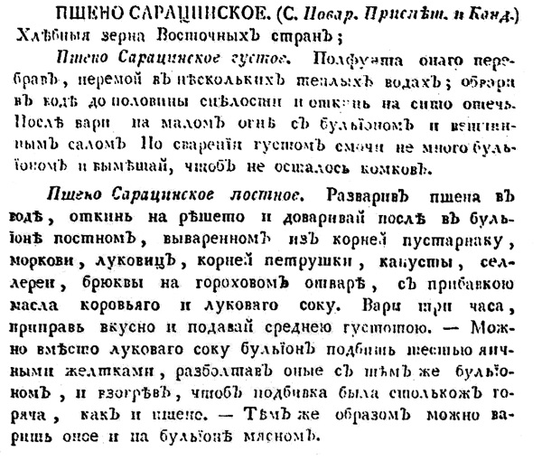 Термин же «сарацинское пшено» как общеупотребительное наименование риса существовал в русском языке практически до середины XIX века.