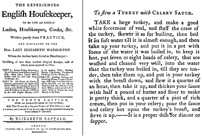 Обложка книги «Опытная английская домашняя хозяйка». 1786 г. с рецептом индейки (turkey) под соусом из сельдерея