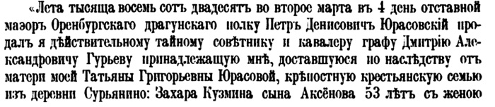 А далее А.Голицын пишет, что «означенный Кузьмич, по словам слышавшего о нем бывшего орловского губернского предводителя дворянства П.К.Ржевского, был большой мастер своего дела. Обедавший как-то у Юрасовского министр финансов граф Гурьев… пришел положительно в восторг от приготовленной Кузьмичом какой-то превкусной кашицы. Не будучи в состоянии удержать своего восторга, министр бросился целовать повара, так угодившего его избалованному вкусу».