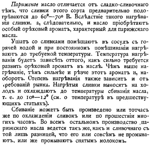Н. Верещагин использовал в качестве сырья нагретые до 80–85 градусов (пастеризованные) сливки, что было открытием для маслоделов всего мира. Масло, полученное новым способом, он назвал «парижским»95. За рубежом его стали именовать «петербургским», так как на экспорт оно поступало из Санкт-Петербурга. Рецептуру Н.Верещагина воспроизводили на фабриках в ряде скандинавских и европейских стран. Но только сделанное из молока, полученного в природно-климатических условиях Вологодской губернии, «парижское» масло приобретало столь ярко выраженный вкус и аромат96.
