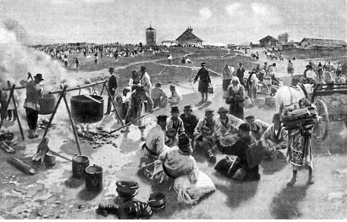 И. Прянишников. Общий жертвенный котел в Престольный праздник. 1890-е гг.