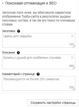 Здесь можно задать новый адрес страницы, а так же сделать ее важнейшие СЕО-настройки (раздел "Поисковая оптимизация и СЕО"). Советую как можно аккуратнее подойти к этой ответственной процедуре, потому что расположение вашего нового сайта в поиске, а так же успешность его продвижения будут напрямую зависеть от того, насколько правильно, точно и уникально вы заполните эти поля. Для начала вам будет предложено несколько вариантов заполнения заголовка и ее описания, поэтому суть задачи вполне очевидна.