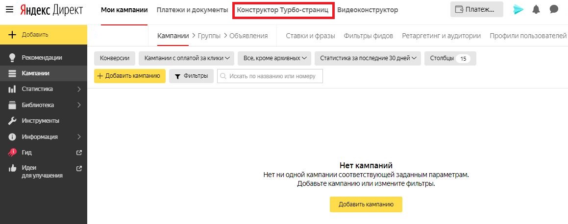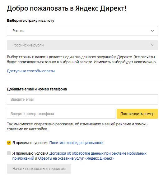 Небольшая особенность сайтов на Яндекс.Турбо заключается в том, что создать сайт на этой платформе невозможно без регистрации рекламного аккаунта. Это выглядит вполне логично, учитывая, что созданный сайт можно сразу запустить в рекламу (сделав, тем не менее, хотя бы минимальные настройки и пройдя необходимую модерацию, но об этом – чуть позже).