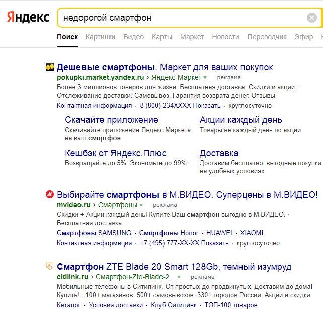 В случае с "недорогим смартфоном" мы увидим вот такие запросы: