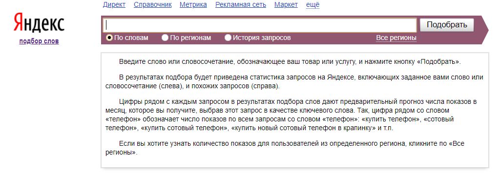 Одним из самых точных инструментов подбора семантического ядра (т.е. ядра ваших поисковых запросов) является Wordstat