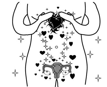 Постепенно расширяйте круговые движения кверху так, чтобы охватить и яичники, и грудь. Смешайте холодную энергию яичников и горячую энергию вашего сердца. Почувствуйте гармонию во всем теле. Ощутите, как энергия наполняет все ваши органы!