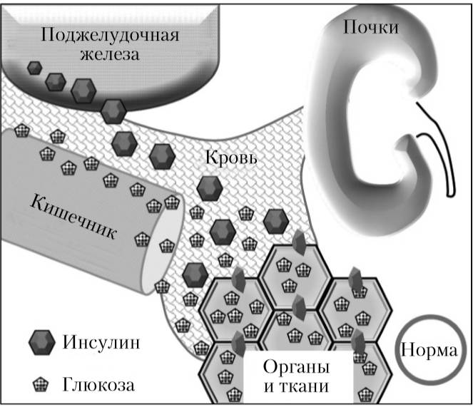 При СД организм не может в полной мере использовать глюкозу, поступающую с пищей, повышается ее уровень в крови, что неблагоприятно влияет на все органы и ткани. Избыток глюкозы частично выводится с мочой.