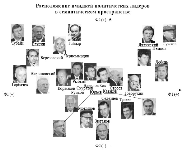Рис. 10а. Семантическое пространство имиджей политических лидеров в сознании жителей России (1997)
