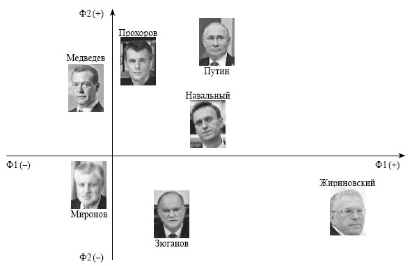 Рис. 10б. Семантическое пространство имиджей политических лидеров в сознании жителей России (2014)
