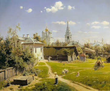 Художник передает состояние гармонии на Земле через призму традиции христианства и природного русского ландшафта, вечность –то, о чем каждый должен задуматься. Теплые тона, солнечная погода придают атмосферу воздушности, легкости, духовной радости. Дети на картине –это будущее, это ранимость, это познание мира, открытие чего-то нового в мире. Автор картины позитивен, открыт, спокоен, радушен.