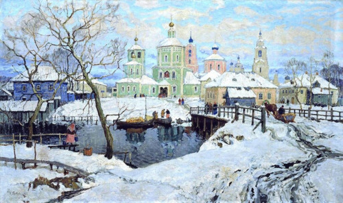 У меня́ был тако́й рабо́чий ме́тод: выноси́ть на нату́ру холст, а пото́м до́ма|дома́ продолжа́ть рабо́тать в ожида́нии но́вого, подходя́щего моме́нта в приро́де. Я по часа́м всегда́ знал, в како́й моме́нт придёт ну́жное мне со́лнечное освеще́ние, и приходи́л за час до э́того моме́нта, а когда́ э́тот моме́нт наступа́л, я клал кисть и лишь наблюда́л взаимосвя́зь всех часте́й карти́ны, её существо́.