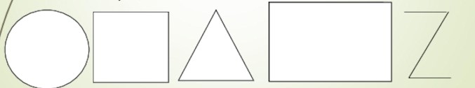 Круг, треугольник, прямоугольник, квадрат, зигзаг.
