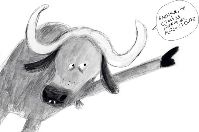 Когда шакал Райт, гиена Сирена, гепард Эдмунд Быстроногий, которого все звали Эх, слоны Джим и Джон, лев Лионель, кистеухая свинка Матильда и Руперт заняли свои места в классе, учитель травоедения буйвол Растеньяк сказал: «Дети, кочующие жирафы добрались до наших мест, поэтому в нашем классе будет учиться новенькая. Знакомьтесь, жирафа Бланка Павлова.