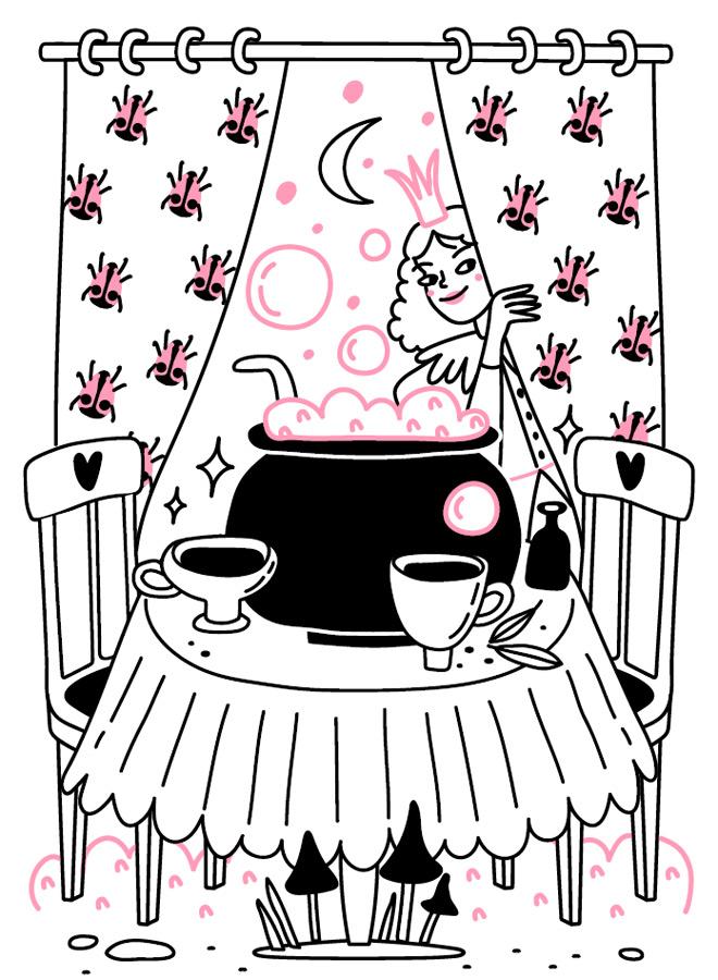 Спустя час Миртильда сняла котел с огня, зачерпнула половником немного зелья и налила в две чашечки, маленькую зеленую с красным цветком и большую темно-синюю с отбитым краешком. Подвинула большую чашку Челесте, маленькую взяла себе и уселась за стол.