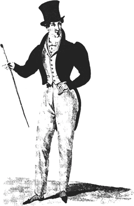 Главный предмет гардероба – фрак – шили из хорошего качественного сукна, а цвет зависел от времени суток: темный (чаще всего синий) для вечера, светлый – для дневных выходов. Впрочем, денди отнюдь не были консерваторами в отношении фраков: известен случай, когда благородный лорд Спенсер ненароком вздремнул у камина в клубе и проснулся от запаха паленого, поскольку фалды его фрака попали в огонь. Находчивый англичанин отрезал обгоревшие фалды, и так возник фасон «спенсер», который затем в виде укороченного приталенного жакета перекочевал в дамский гардероб.