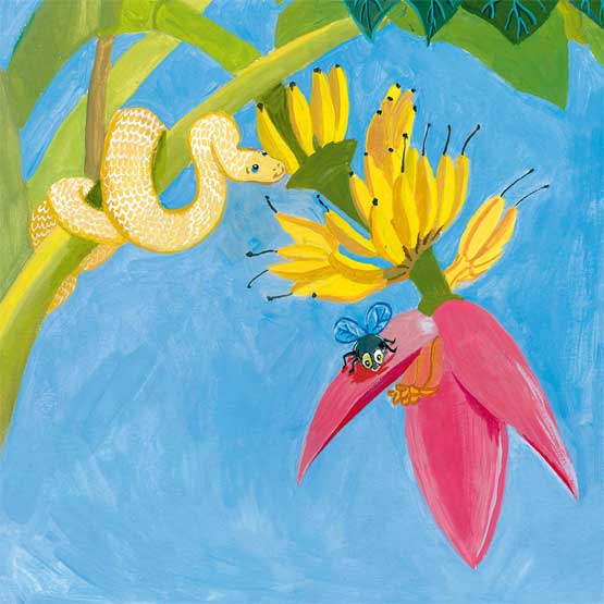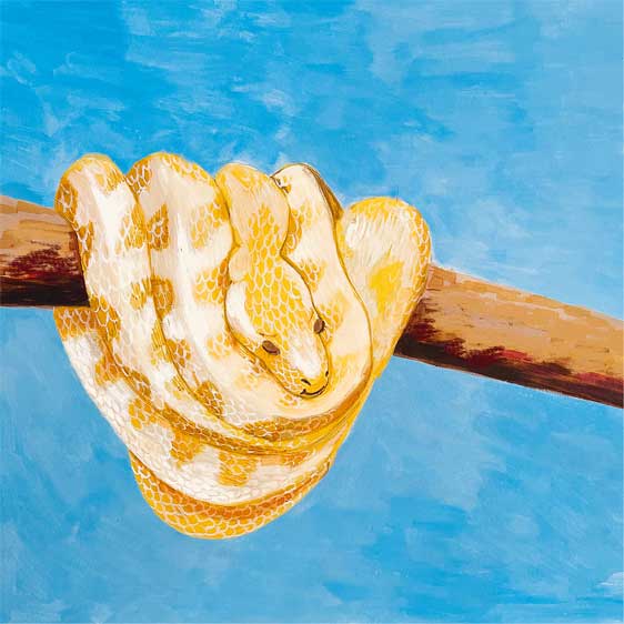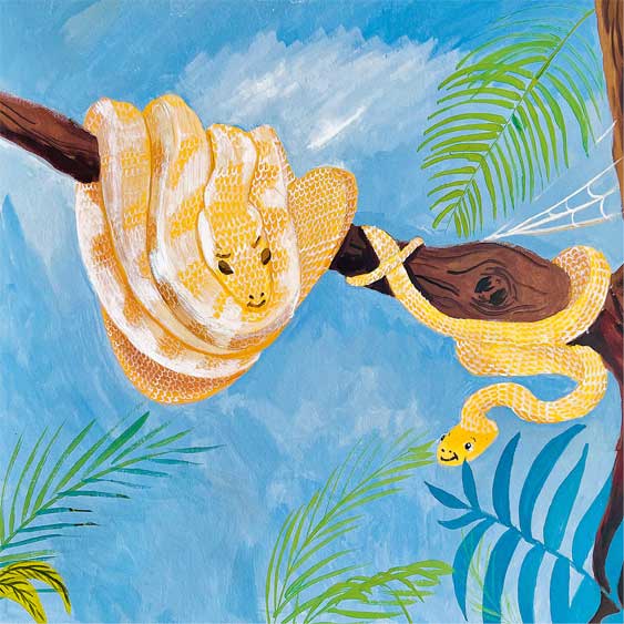 Папа-питон открывает один глаз. Папа-питон открывает второй глаз. Большой сытый питон на большой крепкой ветке больше не спит. Он щурится на малютку-питона и строго шипит: