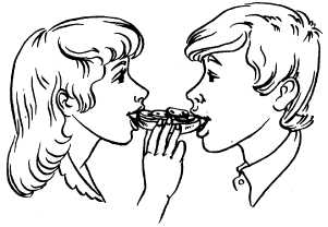 Во время застолья молодым вручают также самодельные «памятные медали» с шутливым текстом, которые, естественно, тоже готовят заранее. Изготавливают их из картона, плотной бумаги. На медали можно нарисовать головы парня и девушки, повернутые друг к другу, между ними бутерброд, от которого они откусывают – каждый со своей стороны. На медаль можно наклеить и знаки зодиака жениха и невесты.
