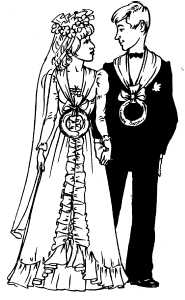 В старину в кольцо вправляли вырезанную эмблему, и оно служило еще и печатью, которой скрепляли деловые бумаги, а эмблемой печати были птицы, якоря, рыбы и другие символы. Хотите вспомнить старину, нарисуйте на плакатах стилизованные старинные эмблемы с колец-печаток, но парой: ведь главное, что нужно выразить, – это идею единения.