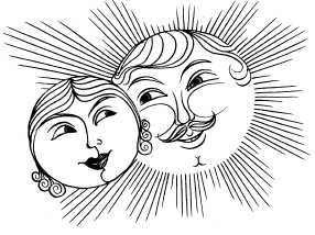 Кстати, знаете ли вы, что символизируют собой кольца? Золотое кольцо – это блеск солнца, ему уподобляется муж в брачном союзе. А серебряное кольцо символизирует луну, которая является меньшим по сравнению с солнцем светилом и сияет его отраженным светом, стало быть, это жена. Так что пусть будут присутствовать в вашем оформлении и солнце, и луна. Ясное солнышко должно быть с улыбающимся ртом, с румяными щеками, бровями, глазами и носом, от него во все стороны расходятся лучи…
