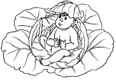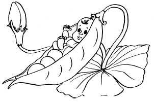 Или нарисовать раскрытый стручок с горошинами и головкой младенца вместо самой первой горошины и подписать: