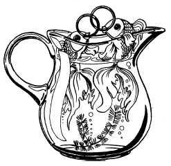 Стены можно украсить и плакатами с изображением вазы с цветами, композициями цветов. Вместо вазы также рисуют или наклеивают кувшин. Из кувшина вместо цветов могут выглядывать, например, две рыбки, которые держат во рту два золотых колечка.