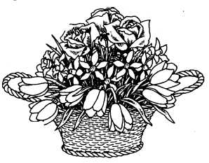 Вазу и кувшин могут заменить и корзиночки. Допустим, в середине корзины возвышаются три красивые красные розы, почти горизонтально свешиваются из корзинки желтые тюльпаны, сбоку – белые нарциссы, следует также добавить цветы более темного цвета.