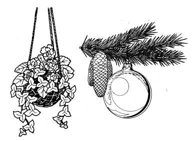 Ветки сосны, ели, пихты, шишки, игрушки, банты, серебряная фольга, серпантин, дождь! Можно делать еловые венки, гирлянды из игрушек, перемежая их большими декоративными конфетами, сделанными из цветной бумаги и перевязанными блестящими шнурами, завязанными в банты. Можно делать венки из игрушек и еловых веток. Можно подвешивать игрушки, собранные в гирлянды, а к еловым венкам добавить цветные елочные шарики одного цвета или разноцветные.