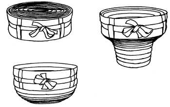 Ширина ее должна быть примерно 5 см. Чтобы моток не раскрутился, его перевязывают тесьмой и закрепляют петлей, а потом уже трансформируют в высокие или низкие, широкие или узкие вазы.
