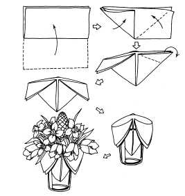 4. Вставьте таким образом сложенную салфетку в бокал и расширьте получившиеся отверстия.