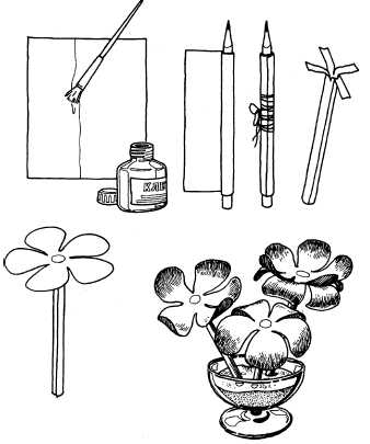 Трубочку по всей высоте перевяжите ниточкой, чтобы не раскручивалась, и дайте просохнуть. Потом освободите от нитки и карандаша. Сделайте с одного конца надрезы, отогните их в стороны и наклейте на них приготовленный цветок.