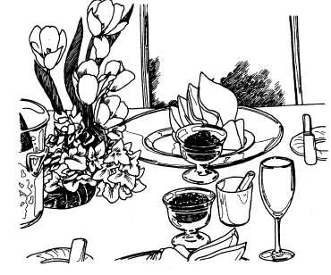 И конечно, на праздничном столе должны быть не только закуски, но и цветы. Можно разложить отдельные цветки по всему столу, у каждого прибора. Чтобы они сохранились, место среза оберните влажной ватой и плотно замотайте изоляционной лентой или скотчем. Можно разложить цветки на небольших плоских тарелочках, маленьких красивых салфеточках.