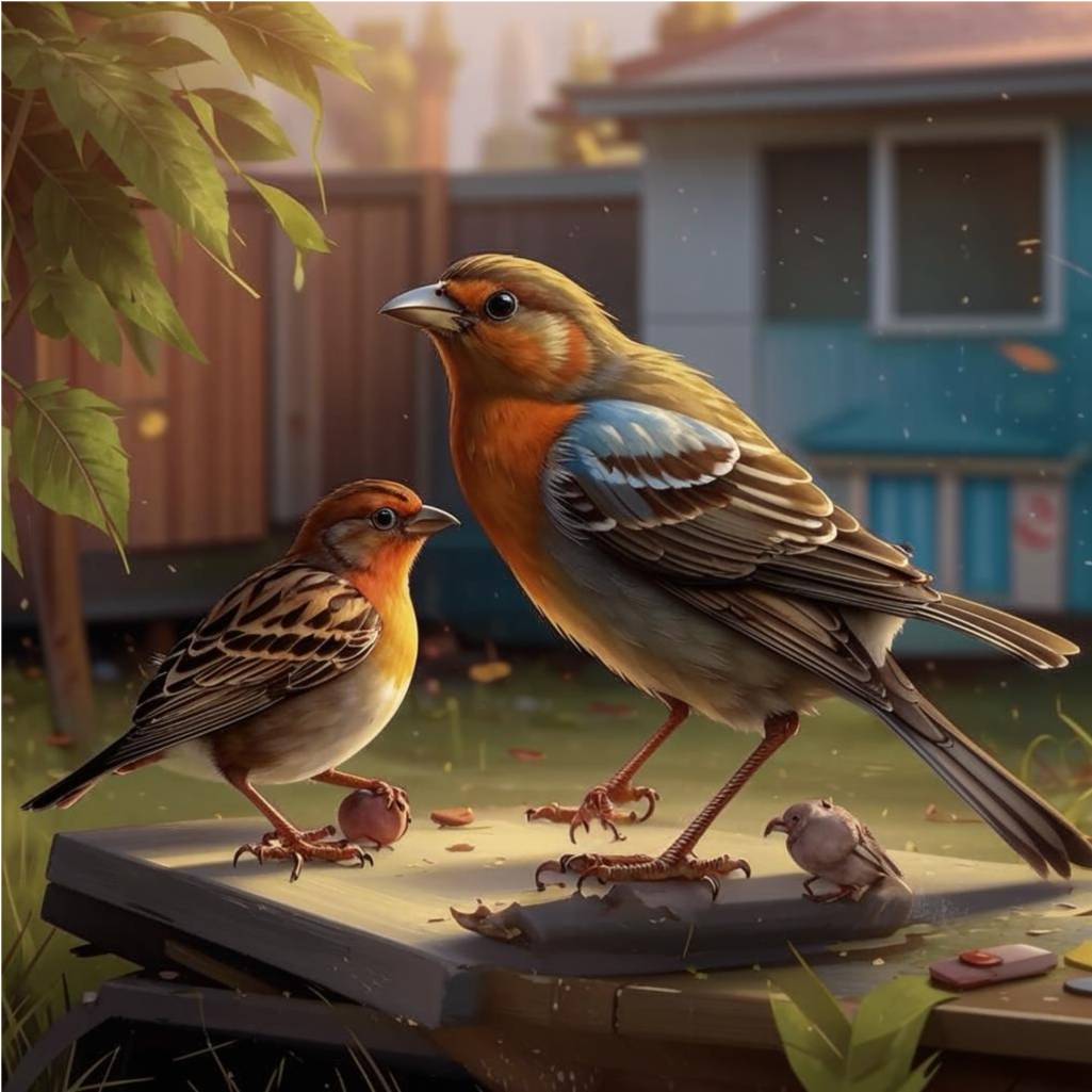 Анечка увидела большую крошку с кусочком сыра и направилась к ней. С другой стороны сквера к ней летел большой голубь. Они одновременно схватились за крошку хлеба. Голубь был удивлён дерзости трясогузки и тянул на себя. Анечка не сдавалась. К схватке уже присоединились ещё несколько голубей. Вдруг сверху спикировал Андрейка. Он спрятал Анечку за своим крылом и клюнул хлебную крошку в самый центр. Трясогузка от удивления отпустила хлеб. И две маленькие птахи взлетели вверх, оставив голубей и крошку хлеба внизу. Они полетели к липе.