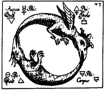 Рис. 1. В алхимии крылатые драконы символизировали летучие вещества (например, пар), а бескрылые – лед или воду