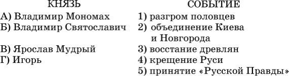 В1. Установите соответствие между именами князей и событиями, связанными с их деятельностью.