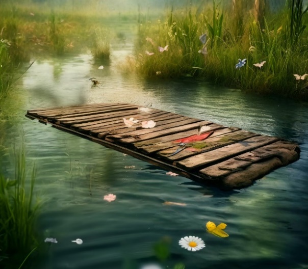 Летом старшие пацаны строили там плоты. В моей памяти остались плотно соединенные бревна, которые выглядели вполне надежно и были на самом деле достаточно крепкими. Ребята катали меня и моих подружек на таком самодельном плоту. Романтика, да и только! Помню, как сейчас: листья камышей тихо шуршат, их метелки развеваются по ветру. Солнце сияет, делая тину изумрудной, бархатистой и очень красивой. Крылышки стрекоз переливаются и заполняют все воздушное пространство. Пацаны двигают плот с помощью длинных толстых палок, а мы, девчонки, неподвижно сидим в центре плота и улыбаемся. И страшно, и классно!