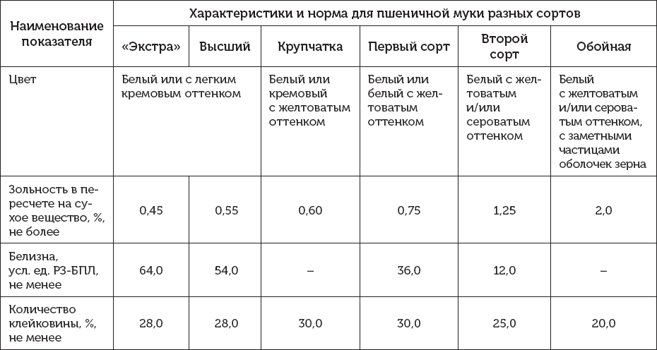 В табл. 1 приведены основные показатели муки по сортам.