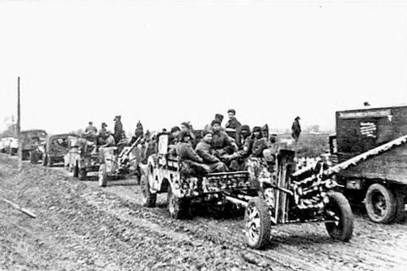 Подразделение истребительно-противотанковой артиллерии на марше.
