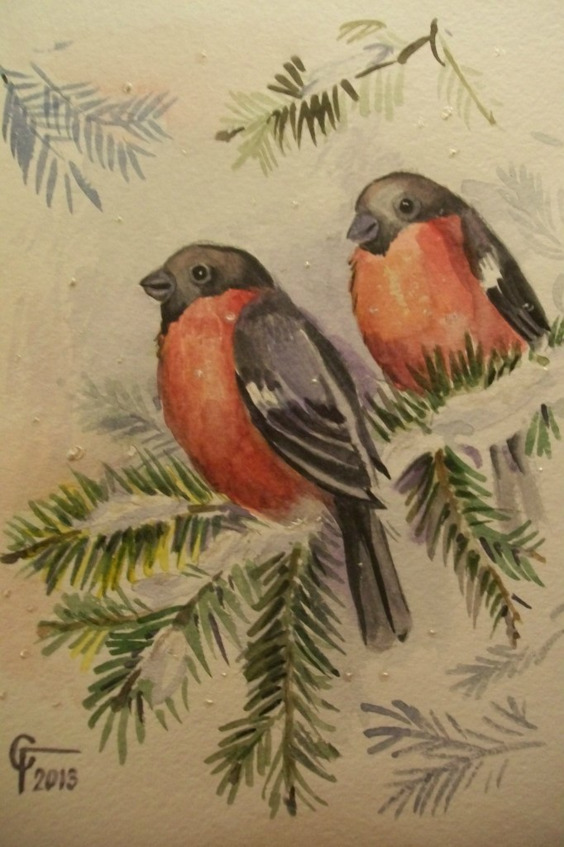 А с куста вспорхнули снегири,Просвистели звонко юркой стаейИ исчезли. Что ни говори,Яркие, как всполохи зари,Эти птички зиму украшают