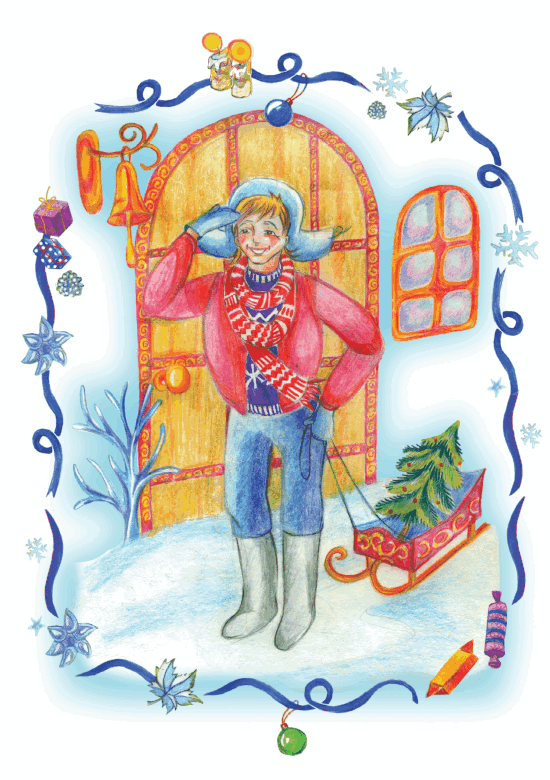 – А что, если забраться на катушку, праздник становится веселее? – в свою очередь удивился мальчик. – Так давайте и мы отпразднуем на катушке! Приглашаю вас в гости. Думаю, мы найдём что-нибудь подходящее. Коснитесь маковки ели.