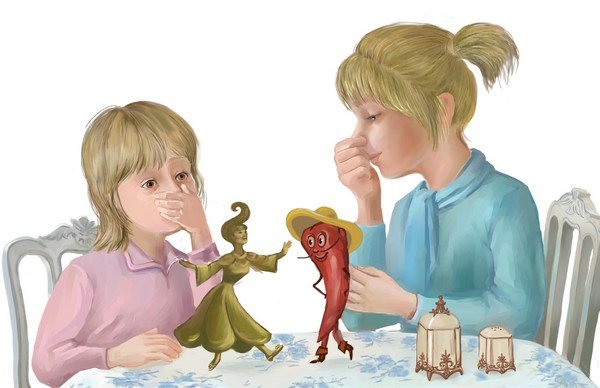 Мы отрицательно покачали головами. Нам с сестрой всё казалось таким удивительным. И как это так получалось, что две самые невкусные приправы, которые мы не любили и даже побаивались пробовать, оказались такими полезными и отзывчивыми? Горчица и Перец не замолкали.