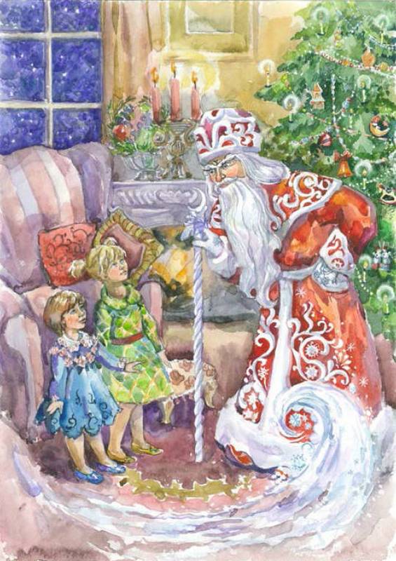 И хотя белая борода закрывала пол-лица, девочки понимали, что их нежданный гость очень сердится. Глаза смотрели сурово, а лохматые брови сдвинулись на переносице. — Вы — Дедушка Мороз, — еле слышно произнесла Слава, — да?