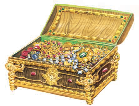 – Камешки! – воскликнула Шкатулка так громко, что мы подпрыгнули. – Камешки! Ничего себе! Это мои самоцветы они называют камешками! Это так они говорят о драгоценных-то камнях! Да известно ли вам…. Впрочем…. Откуда вам что известно. Вот как поступим… Садитесь-ка рядом и слушайте.