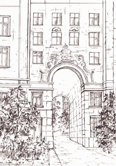 Двор нашего дома принадлежит только нам. Так уж нам повезло. Мы живём в самом центре города, где жилых зданий мало. С одной стороны нашего двора стоит картинная галерея. Между её зданием и двором зелёный деревянный забор, по которому очень здорово бегать. А с другой стороны – детская больница: от неё двор отгорожен красным кирпичным забором, с которого мы прыгаем на крыши больничных складов. Вот и всё. С третьей стороны стоит наш дом. Двор у нас большой, зелёный. По траве можно босиком бегать. Много цветов на клумбах, деревьев красивых разных… Все удивляются: «Ах, какой у вас двор красивый! Ах, какой у вас двор зелёный!».