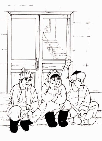 Он пошёл, сел на крыльцо и начал снег из валенок доставать. Но у него как-то это плохо получалось.