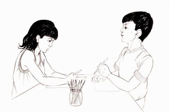 На дворе весна, птички поют, солнце ярко светит… Чтобы оно нам не мешало, баба Валя прикрыла шторы. В комнате тепло и тихо, только часы тикают… Вдруг смертельно захотелось спать. Чтобы не уснуть сразу, смотрю во все глаза на Тёмку: он карандаш точит.