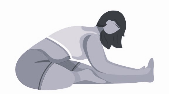 Исх. положение: сидя на полу, одна нога вытянута, другая согнута (пятка упирается в пах). Стараемся с прямой спиной наклониться вниз, к ноге. Плавно, не раскачиваясь, не округляя спину и не “ныряя” вниз головой, подаем нижние ребра вперед, как бы стараясь достать ими до бедра. По 2 минуты на каждую ногу. Ощущения легкие тянущие (важно!), без резкой боли. Если больно под коленом – немного согни его.