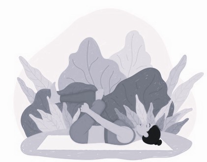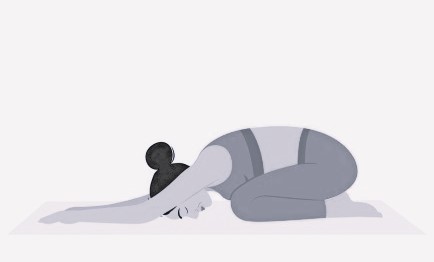 Садимся тазом а пятки, животом ложимся на бедра, руки вытянуты, опора- на ладони. Лоб лежит на коврике. Если не получается опустить таз на пятки, то под него можно положить свернутый плед или валик. Если лоб далеко не на полу, то можно согнуть руки и положить его на кулаки. Отдых в этом положении 2 минуты.