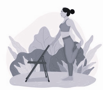 Разминка бедер: согни одну ногу в колене, другая – прямая и уверенно стоит на полу. Если положение не устойчиво, то можно держаться руками за что либо (стул, подоконник, лестницу). Ритмично совершаем круговые движения коленом и бедром по направлению «к себе- в сторону – вниз». По 10-12 раз на каждую ногу.