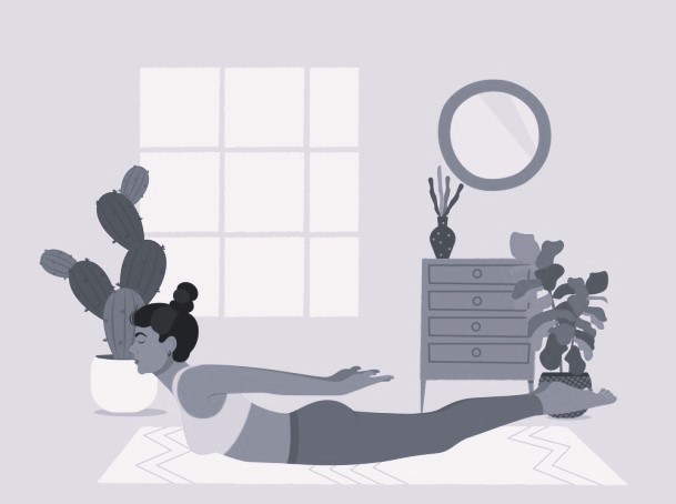 Упражнение для укрепления мышц спины: “лодочка”, но статичная. Делаем мы ее часто , однако всё же повторюсь, куда смотреть на этой картинке. А смотрим мы на область плеч и шеи, где ничего не должно быть “зажато”.
